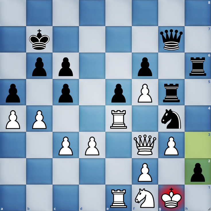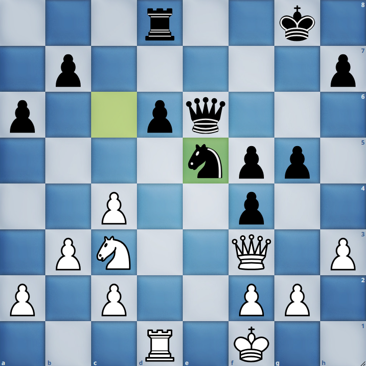 Nach 24. ... Se5? verlor Schwarz seinen Bauern auf b7. Wenig später fiel – nach dem Damentausch – auch der Bauer auf a6. Das anschließende Endspiel mit Turm und zwei Bauern gegen Turm führte unsere deutsche Meisterin von 2015 souverän zum Sieg.