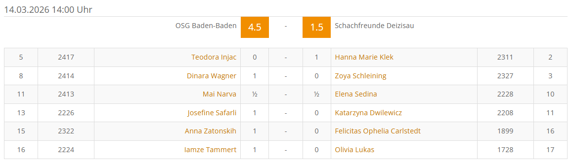 OSG Baden-Baden vs. Schachfreunde Deizisau 4,5 : 1,5
