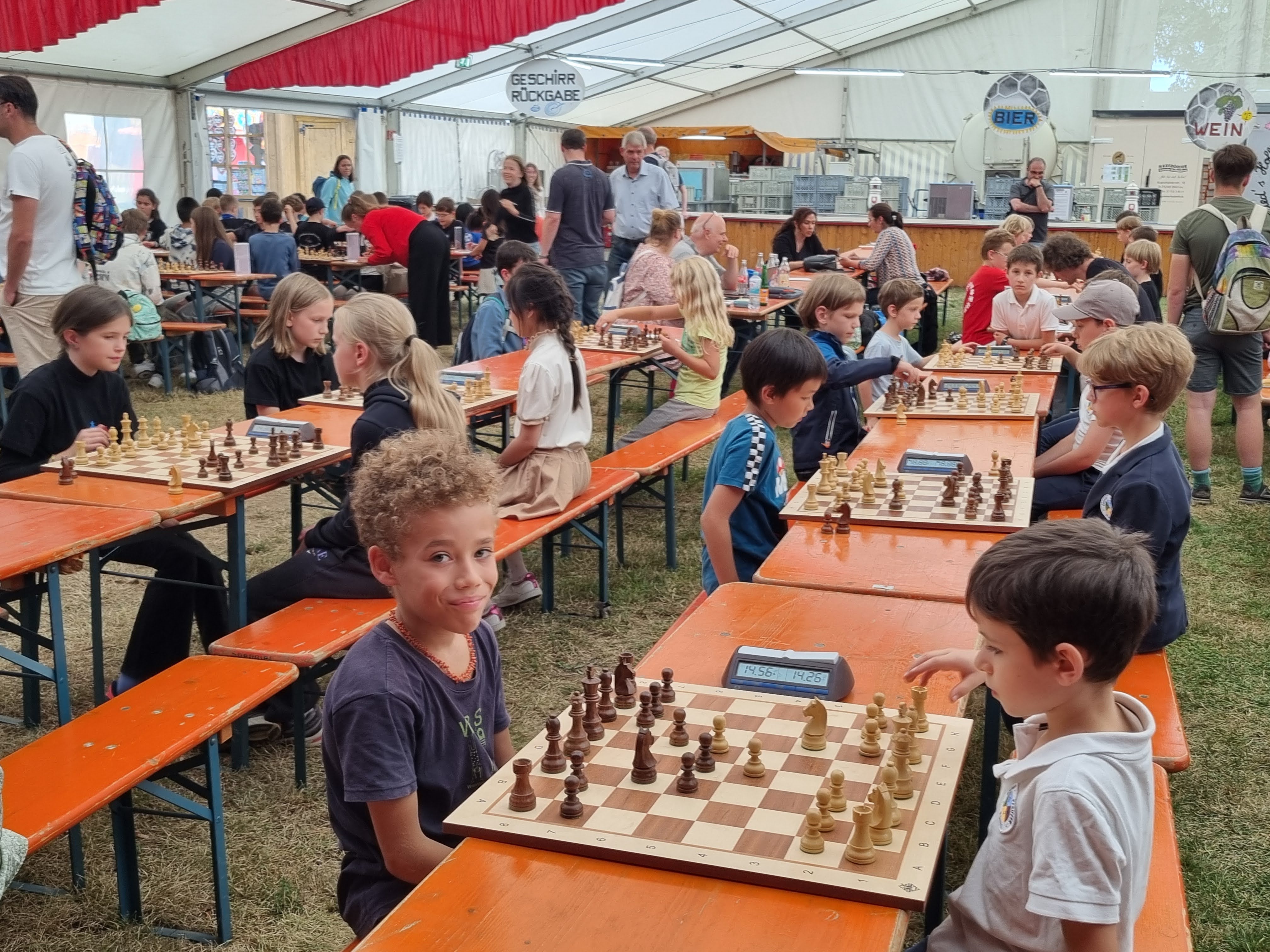 Schulschach lebt! Das bewies der Offene Baden-Württembergische Schulschachpokal, der am Freitag, den 25. Juli 2025 in Deizisau stattfand. Mit 83 Mannschaften wurde die Teilnehmerzahl aus dem Jahr 2023, als der Wettbewerb zuletzt in Deizisau durchgeführte wurde, sogar übertroffen. Austragungsort war das große Festzelt auf dem Festplatz der Gemeinde – und das füllte sich früh am Morgen mit jungen Spielerinnen und Spielern, Betreuern und viel Vorfreude auf einen Tag im Zeichen des Schachs.