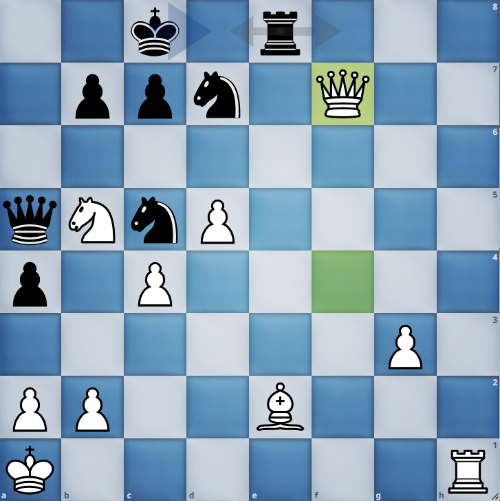 Entscheidend war der Moment, als Nebolsinas Gegnerin Bashylina 34. Dxf7!! fand. Dies bedeutete einen kostenlosen Bauern für Weiß nebst Eindringen in die schwarze Stellung , da Schwarz den Le2 wegen seiner Schwäche auf der Grundreihe nicht schlagen darf.