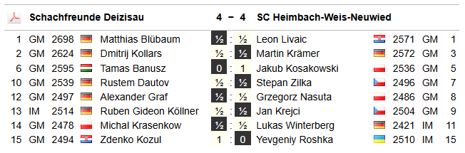 Schachfreunde Deizisau - SC Heimbach-Weis-Neuwied 4:4